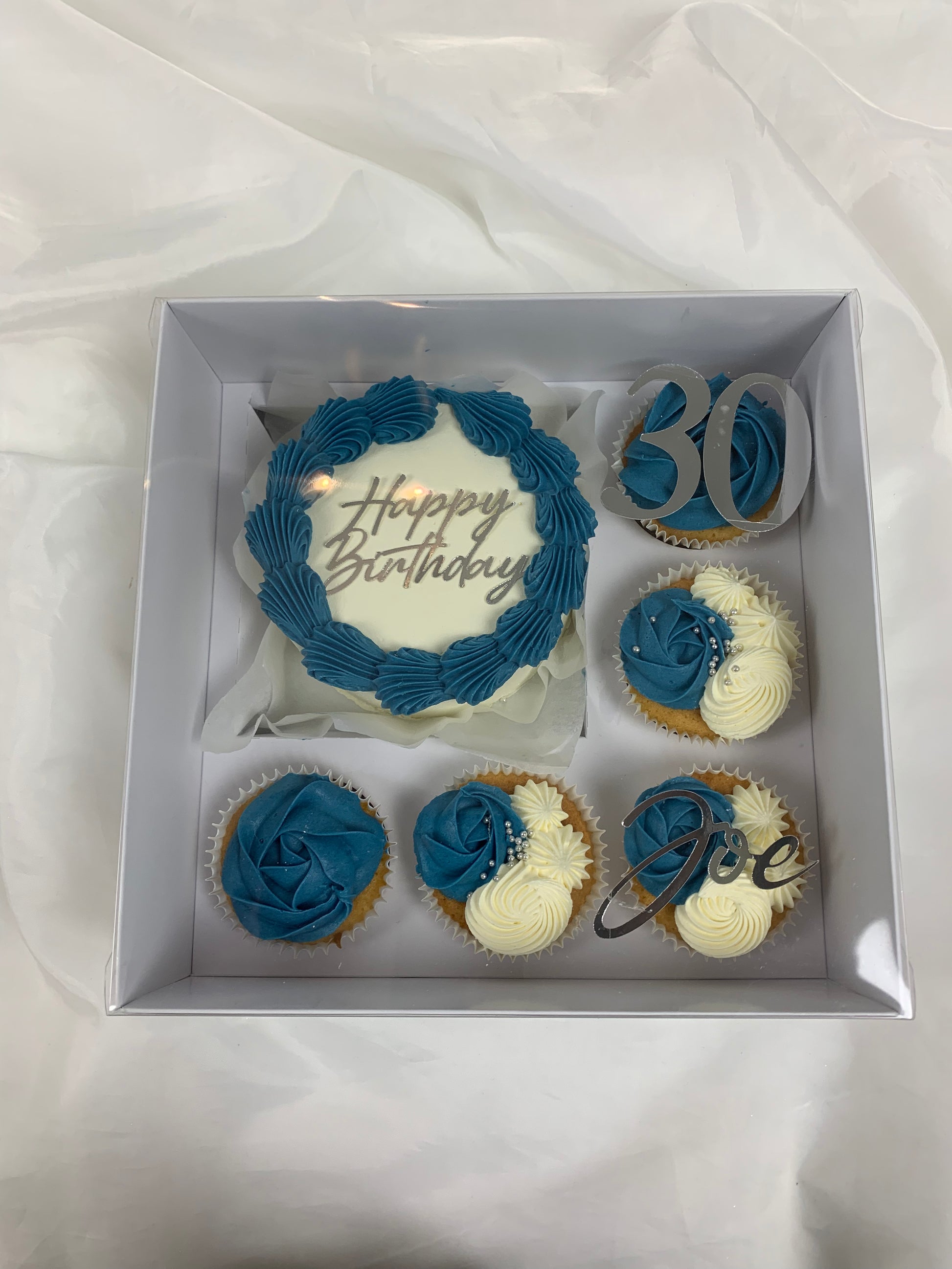 Colours and design may vary slightly from the Colour selected. The cake pictured is a bento cake an 5”+ 5 cupcakes – serves 9