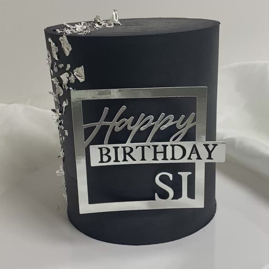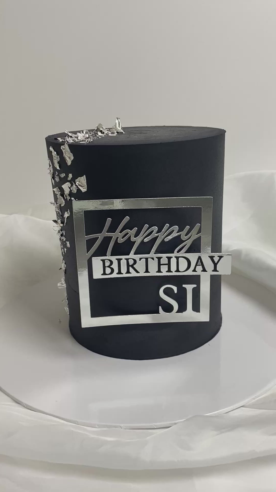 Cake with topper and silver leaf